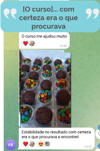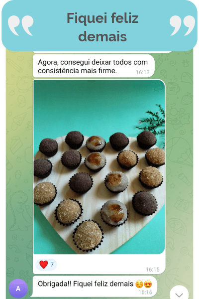 Ao entrar no curso você terá acesso a nosso grupo exclusivo de alunas, onde você vai poder trocar experiências com outras confeiteiras, compartilhar dicas e tirar dúvidas