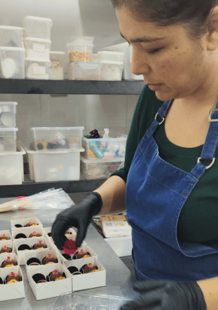 Hoje tenho como missão mostrar que a Confeitaria Vegana é tão deliciosa e acessível quanto a confeitaria tradicional e que mulheres conseguem transformar a própria vida através dela.